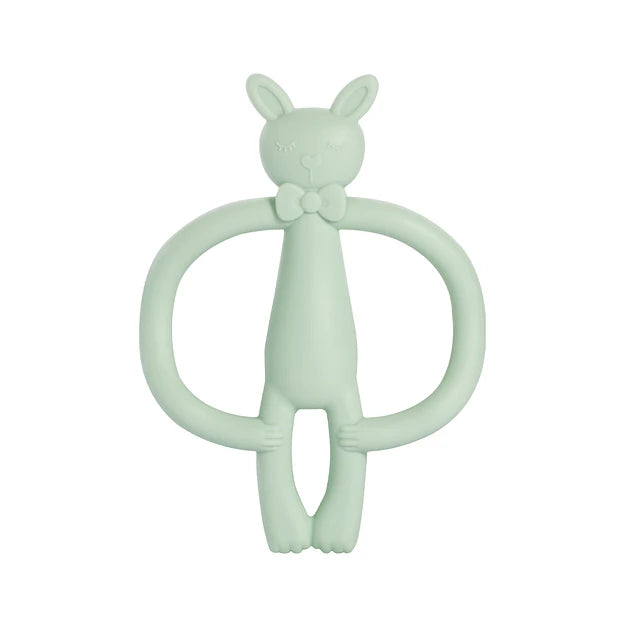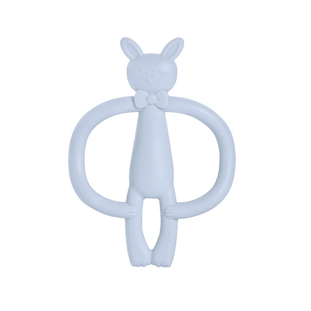 Este mordedor en forma de conejito rosa de silicona suave masajea las encías sensibles del bebé, ayudando a calmar el dolor de los primeros dientes mientras explora con sus manitas. Su diseño flexible llega a todas las áreas de la boca, incluyendo molares, fortaleciendo la mandíbula y fomentando el desarrollo del habla. Fabricado con silicona médica 100% libre de BPA, es seguro para morder y masticar desde los 3 meses.